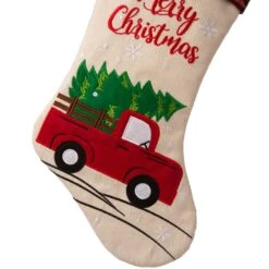 Glitzhome Multicolored Red Truck Christmas Tree Skirt 0.25 In.